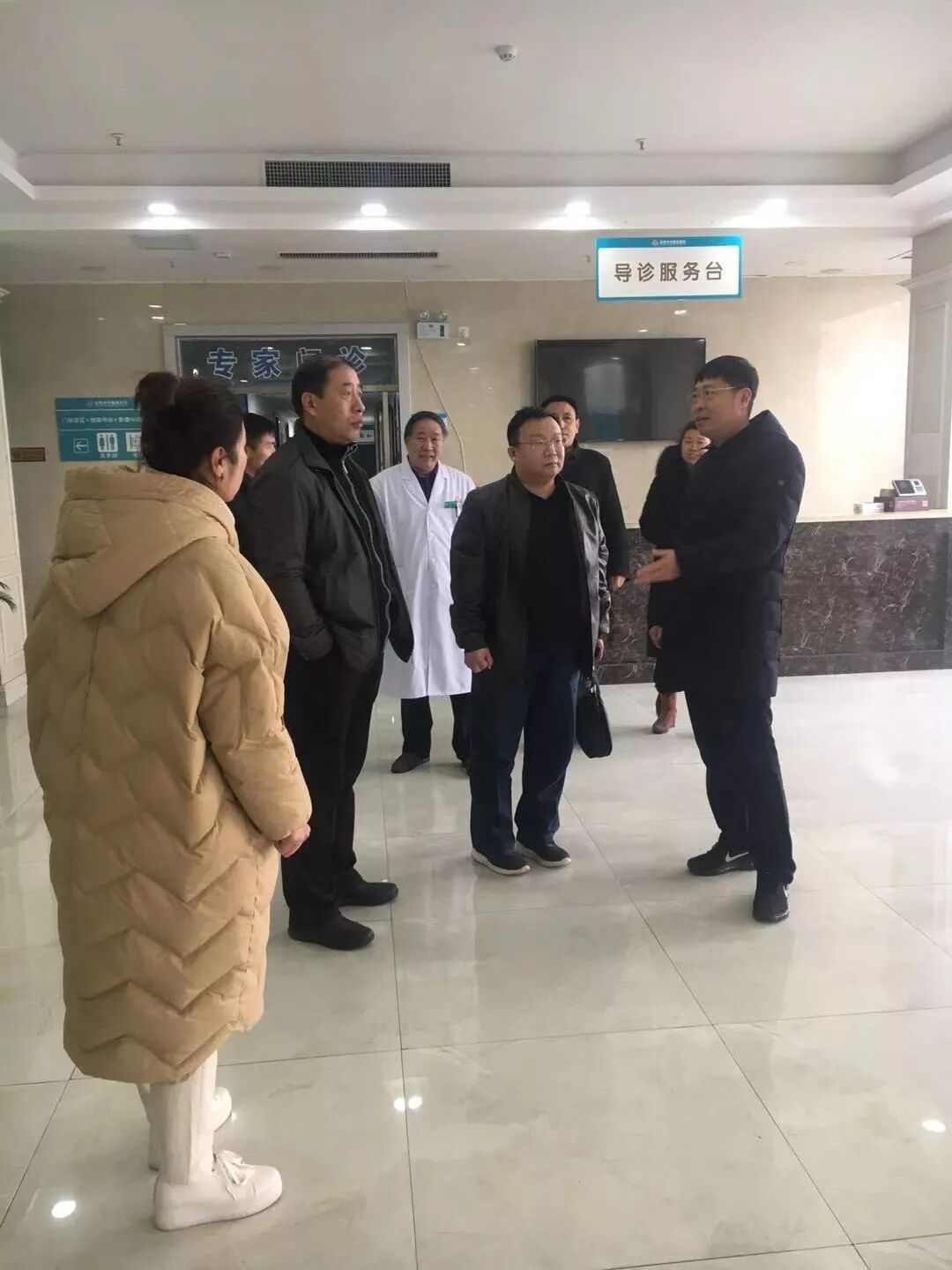 我院院长刘斌、徐合林,十分重视本次市卫健委领导对我院工作的调研指导,亲自在一楼门诊大厅迎接各位领导们的到来。