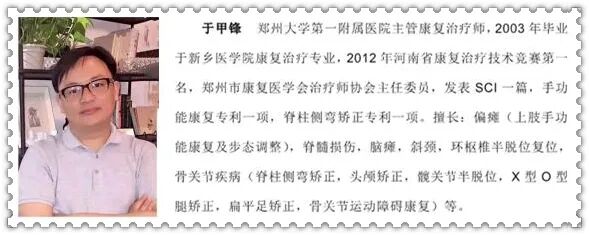 郑大一附院康复专家于甲锋每月定期来我院坐诊、授课,欢迎广大患者朋友相互转告并来院预约就诊。详情请关注我院下方的公众号。