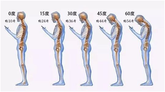 前倾呈60°角时,颈椎承重可达54斤。